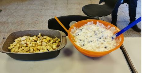 Nun hatten wir alle reichlich Hunger und freuten uns auf das Mittagessen. Die Kochgruppe richtete das Mittag an und rief alle beisammen.