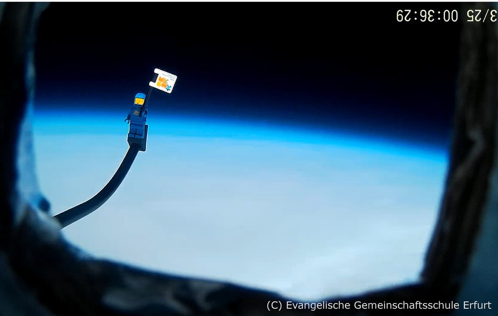 Am 16.03. startete die Evangelische Gemeinschaftsschule Erfurt einen Helium-Ballon. Die 'befraute' Sonde stieg auf knapp 35.000m, bevor sie sicher auf einem Feld nördlich von Naumburg landete.
